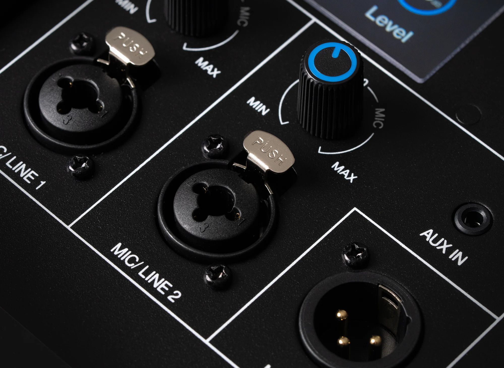 – 3-channel onboard mixer with combo mic/line inputs and aux input